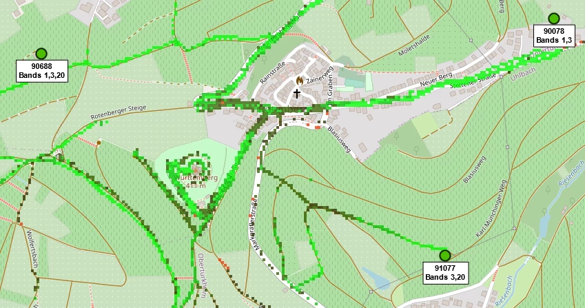 Hallo @JoachimK. , erstmal vielen Dank für deine Recherche. Die Kartenausschnitte kommen mit tatsächlich bekannt vor 🙂 Ich wohne allerdings in Stuttgart Rotenberg. Liegt zwar in der Nähe von Schmiden (ca. 5 km Luftlinie) aber aufgrund der Geographie habe ich keinen Sichtkontakt nach Schmiden. Insofern glaube ich fast, dass unser Funkturm näher sein müsste