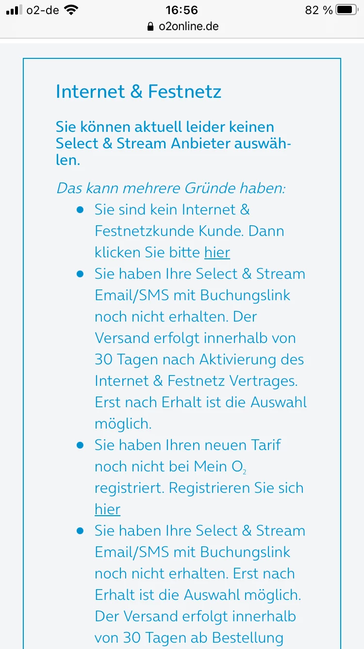 Select&Stream trotz SMS und Mail kann nicht aktiviert werden