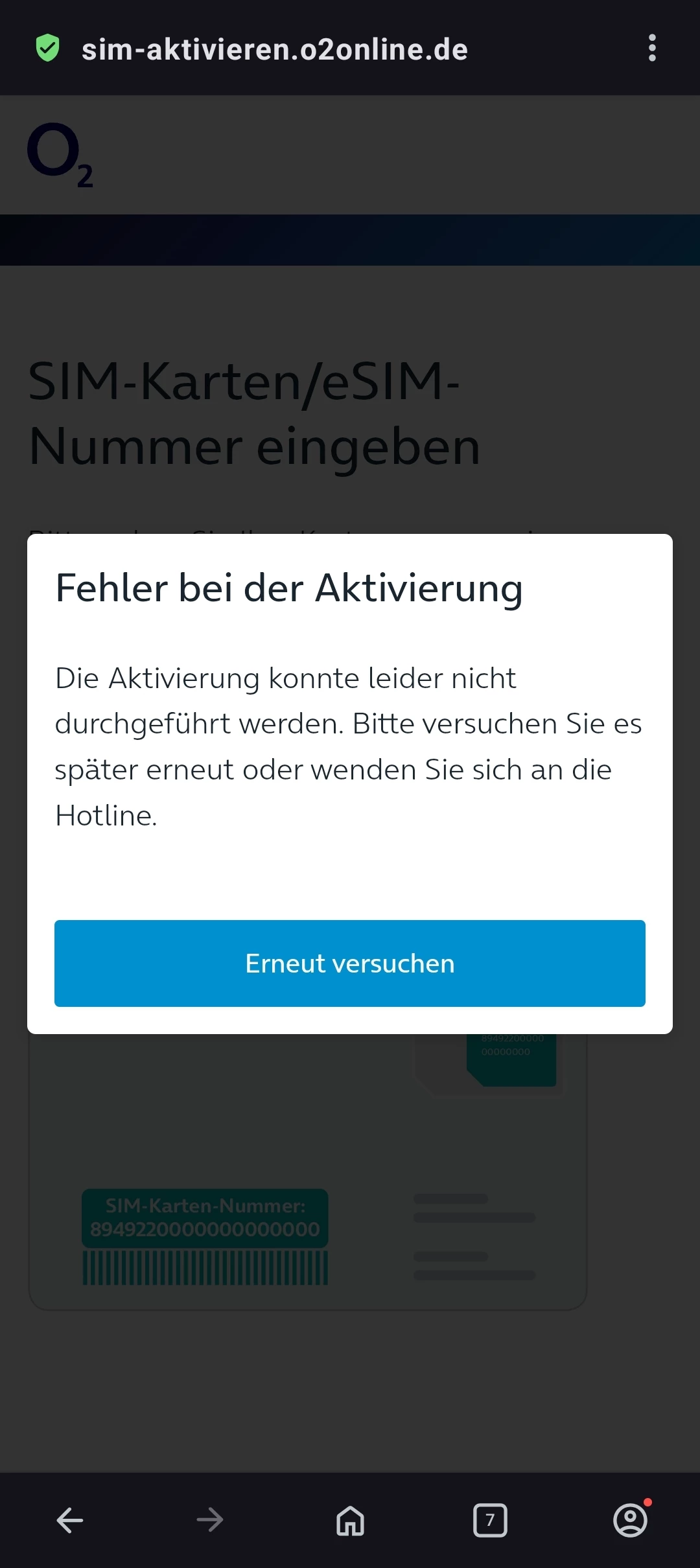 Leider lässt sich die Sim Karte nicht aktivieren.