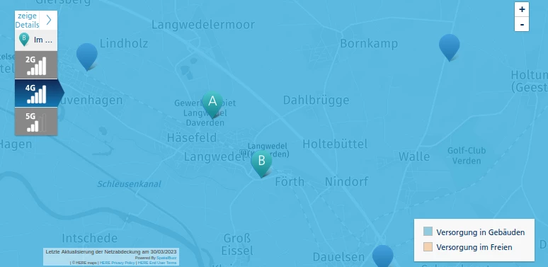 in Langwedel selbst, gibt es zwei Basisstationen, ich habe diese mal mit einen “A” und “B” markiert: