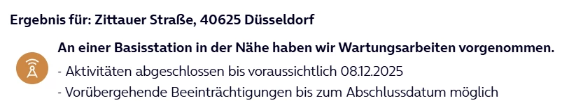 Überprüfe die Netzsituation am besten nochmal in ein paar Tagen wenn die Wartungen abgeschlossen sind. Auch wenn an einer Basisstation aktuell Wartungen sind, sind häufig auch die Stationen in der Umgebung stärker ausgelastet, da sie die Last der fehlenden Station mit ausgleichen müssen.