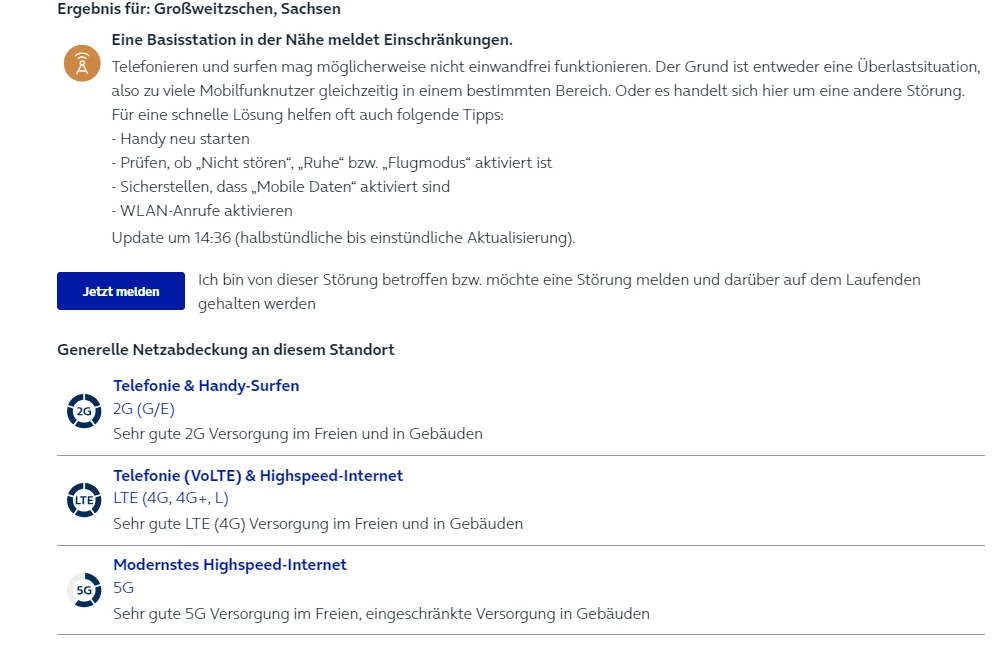 ich habe einmal für 04720 Großweitzschen nachgeschaut, hier wird in unserem Live-Check eine Störung angezeigt: