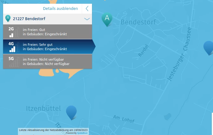 es gibt hier mehrere Basisstationen, wobei die Station bei “A” wohl die nächstgelegene für deinen Ort ist: