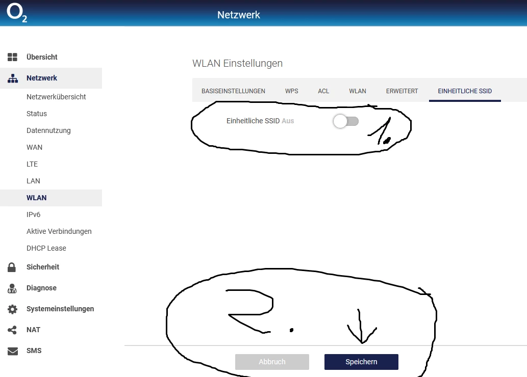 Hier schiebst Du den Regler nach links, um die einheitliche SSID zu deaktivieren. Jetzt noch auf „Speichern“ klicken und wir sind FAST am Ziel.
