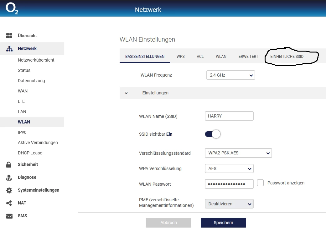 Hier klickst Du auf „Einheitliche SSID“ und erhälst das Fenster: