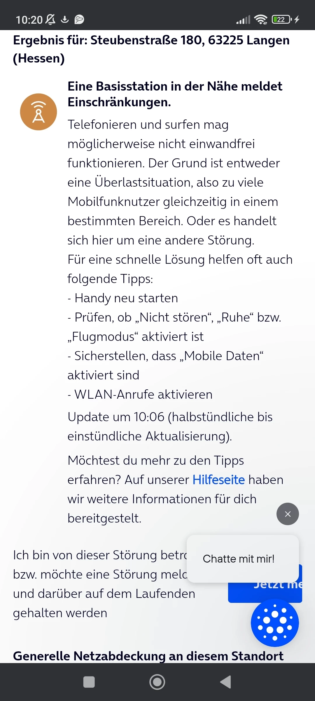 Melde die Einschränkung im Livecheck über den "jetzt melden" Button. Dann bekommst du eine Ticket ID