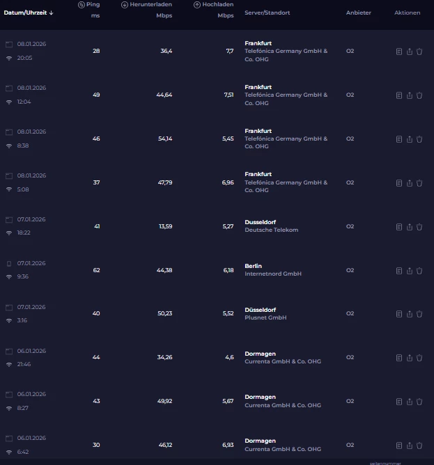 die Situation hat sich deutlich verbessert. Ist jetzt etwa wieder so, wie im Frühjahr/Sommer 2024 und wie es auch im Frühjahr/Sommer 2025 war, bevor es so rapide bergab ging. Es gibt einzelne Tage, wo es ätzend zu bestimmten Uhrzeiten ist. Der o2-Empfang in meiner Fahrradwerkstatt in Berlin-Pankow am 5. Januar hat mich neidisch gemacht. Da waren 243 Mbps Download und im Up 43 Mbps.