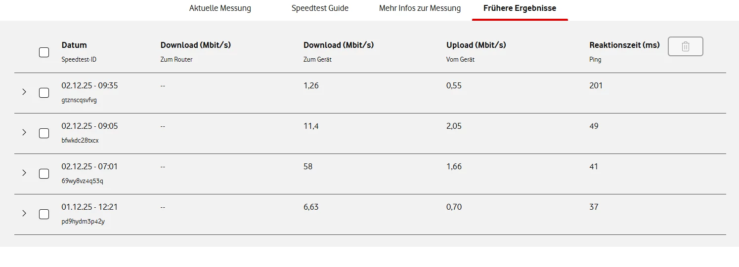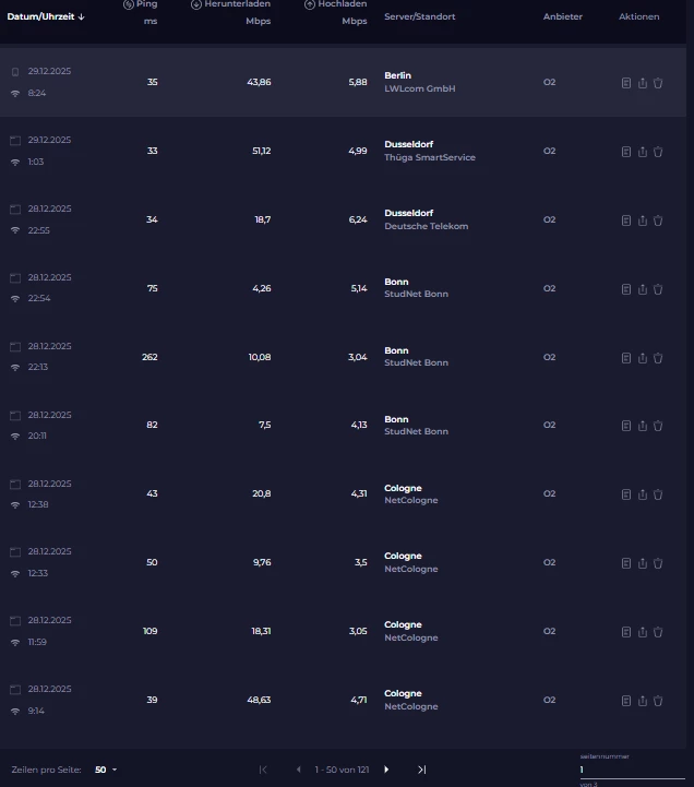 Diese Messergebnisse sehen seit ein paar Wochen etwa so aus. Abrisse beim Streamen am TV, am Notebook, selbst kleine Datenbanken laden nicht mehr am Smartphone im WLAN-Modus. Es ist ätzend.