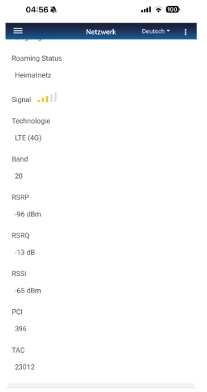 Sie hat einen Homespot 2 mit unten stehenden Daten. Eine Ausrichtung unter dem Fenster oder aus dem Fenster bringt manchmal etwas aber nicht immer...Habe schonmal auf cellfinder nach dem Mast geschaut (1km Luftlinie zu ihr, keine gebäude im Weg, höchstens bäume/Wald) und mir ist aufgefallen das dieser mit Band 1 angegeben ist, aber der Homespot band 3 ausgewählt hat! Könnte es daran liegen?