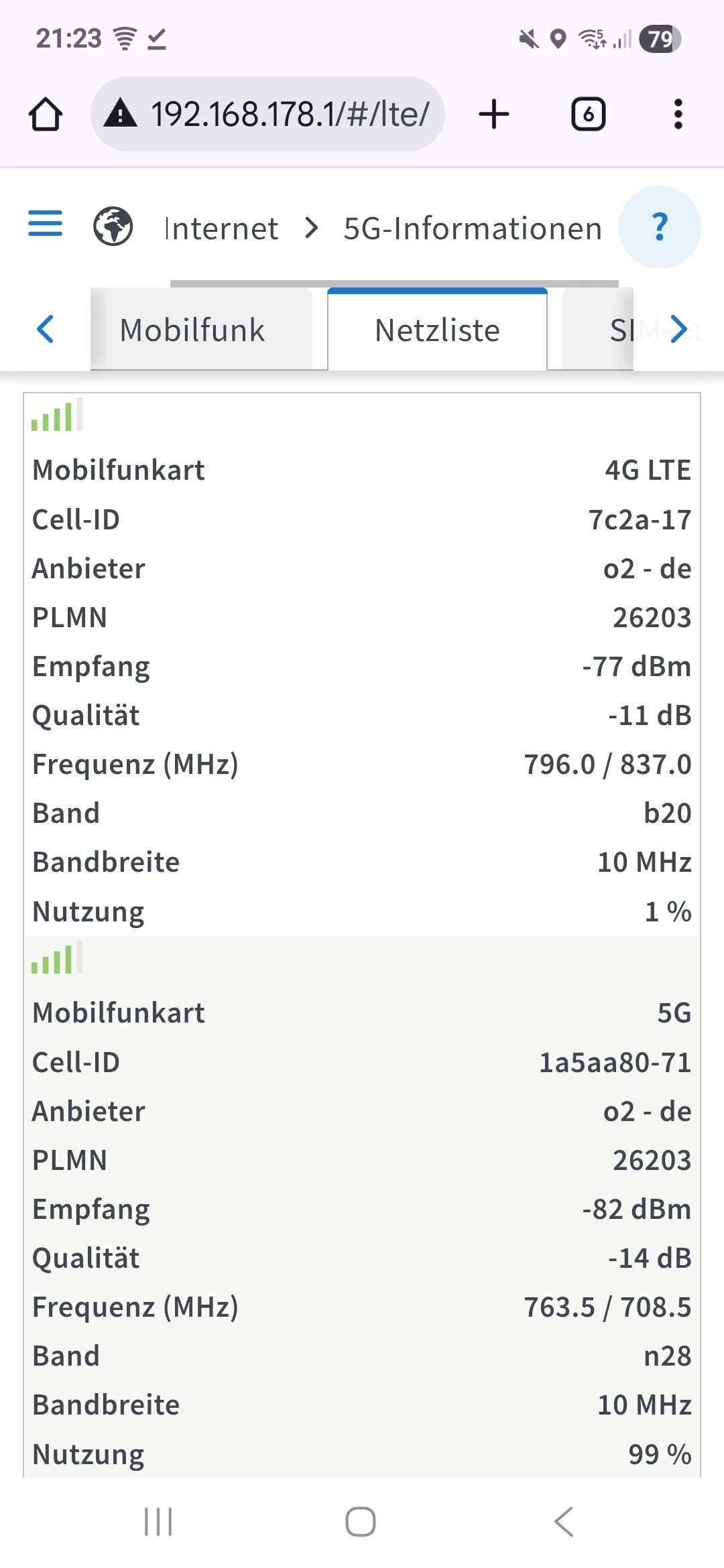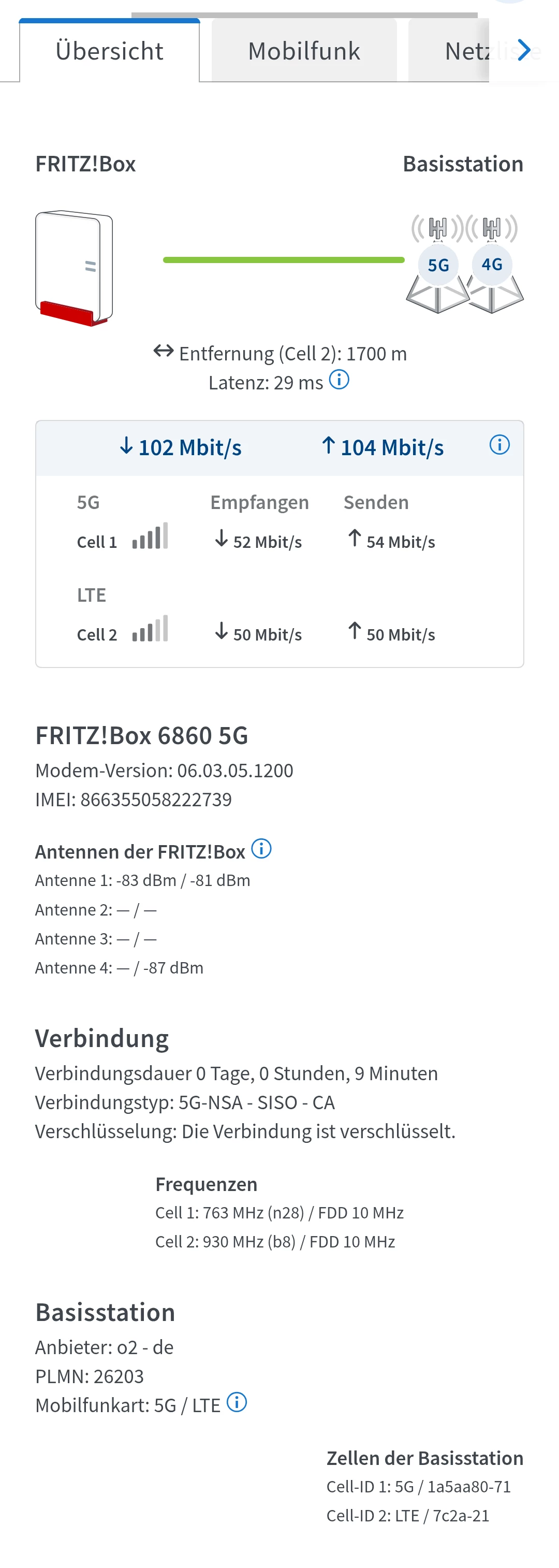 und das 5G N28 von der gNodeB 431786 (das ist die Station bei “A”)