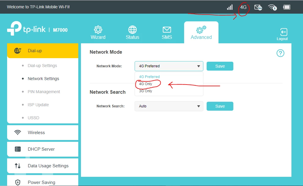 Falls nicht, stell einmal von 4G Preferred auf 4G Only um und die Einstellung mit Save speichern.