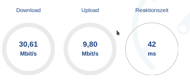 Auf meinem Laptop, der zu dem Homespot mit einem Ethernet Kabel verbunden ist, habe ich heute um 11:19 die folgenden Werte auf dslweb.de gemessen: