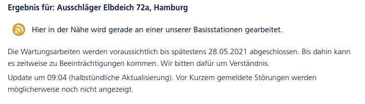 Die von @Tom_ genannte Station ist derzeit auch laut den Kartendaten störungsfrei und voll am Netz.