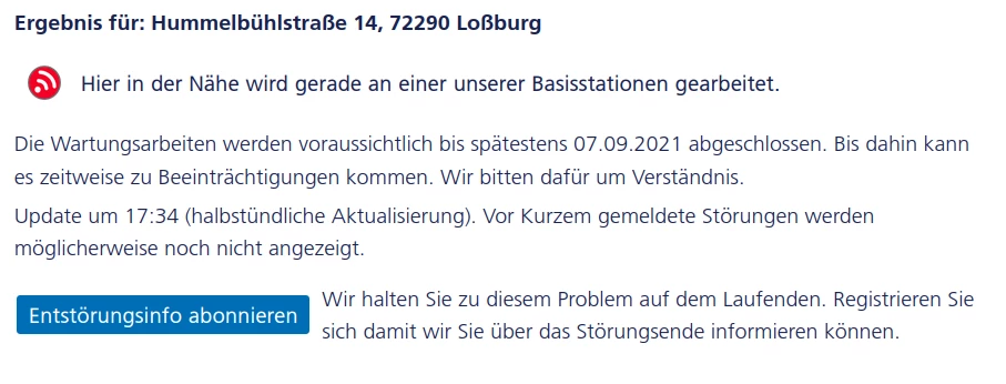 Ich vermute dass das einfach nur der Netzausbau an der Station “Hummelbühlstraße 14, 72290 Loßburg” war. Denn bislang hat diese Station leider nur einen LTE Band 3 Ausbau.