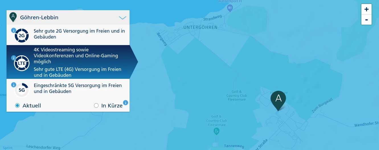 Persönlich würde ich denke ich hier, zum “rosafarbenen Netzbetreiber” schauen, da dieser eine eigene Basisstation direkt in Untergöhren besitzt. (o2 sendet aus Göhren-Lebbin)