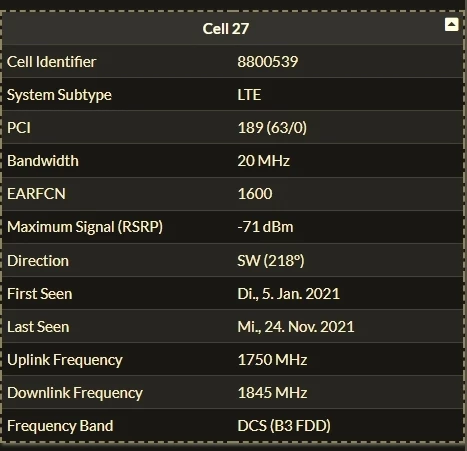 Als Vergleich habe ich eine andere Zelle priorisiert, in welcher das Problem nicht auftritt. (800MHz)
