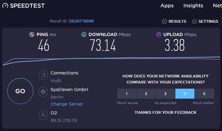 Vor diesem Problem war die Verbindung sehr schnell - in Guten Zeiten bis 100MBit,