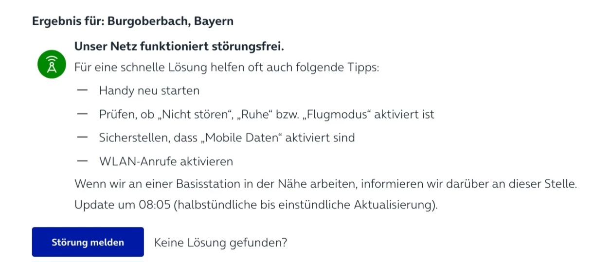Die Netzabdeckung ist irrelevant wenn eine Störung vorliegt.