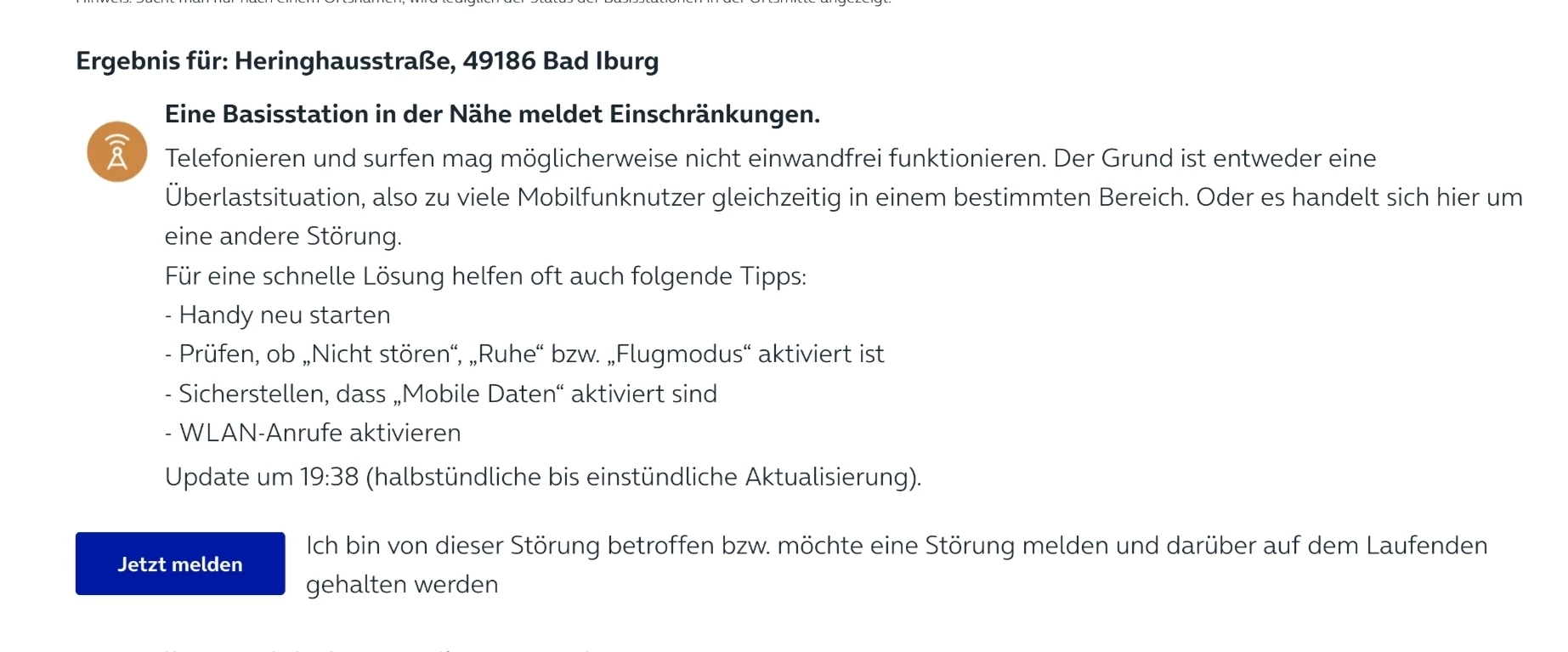 Seit nun mehr 16 Monaten gibt es in unserem Bereich ein Problem mit der Netzabdeckung.