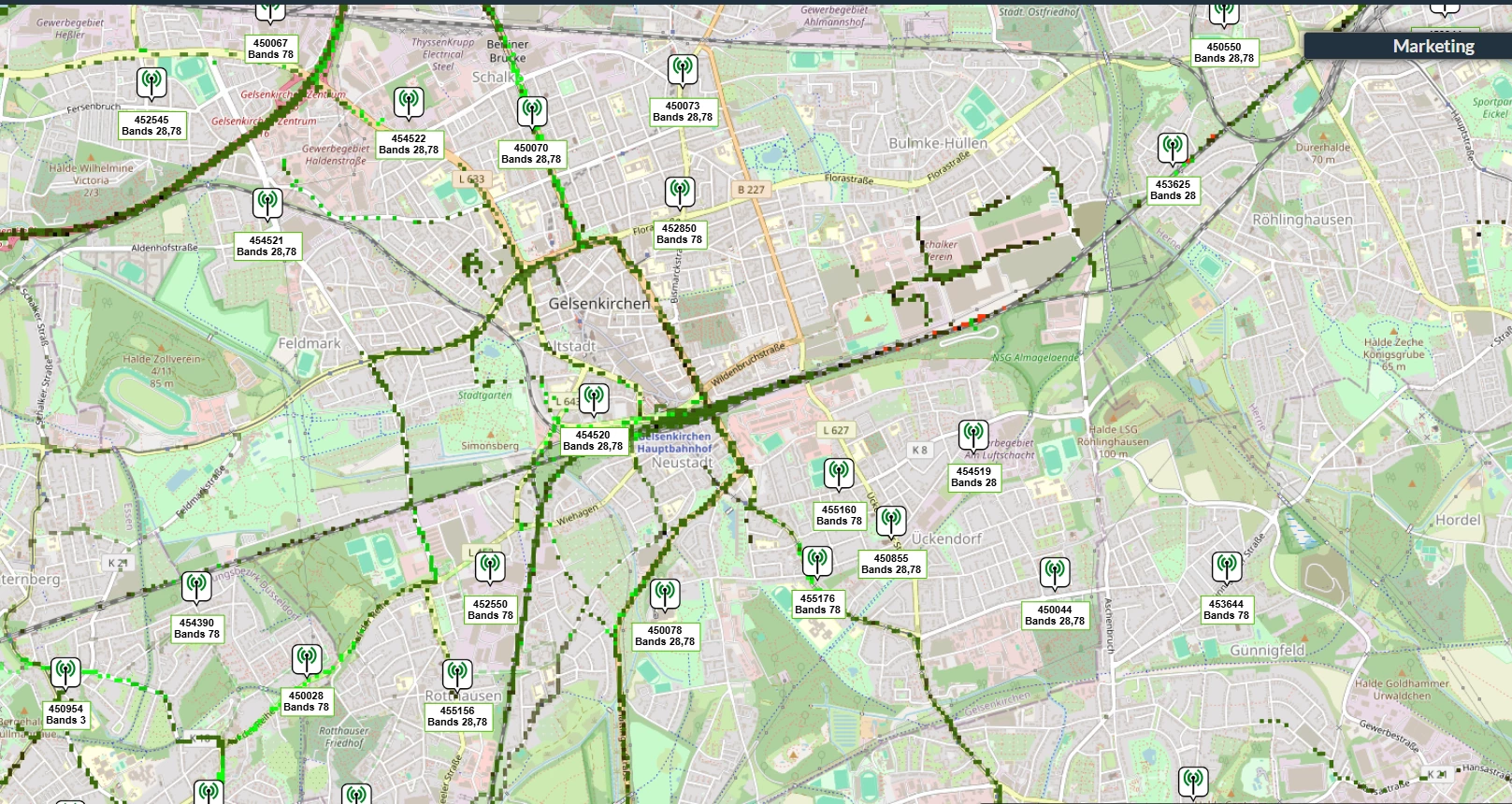 in Gütersloh haben wir am Martin Luther Platz, beim Amtsgericht und beim Stohlmannplatz 5G Basistationen.
