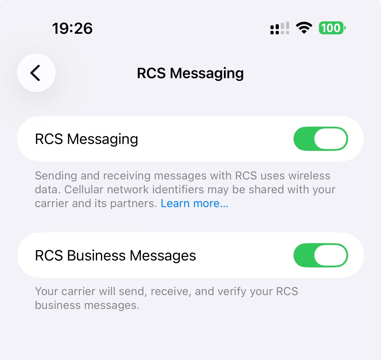 Morgen werde ich noch einmal die Datenschutzeinstellungen durchgehen und RCS deaktivieren. Vielleicht löst sich das Problem über Nacht ja von selbst – wir werden sehen 😄