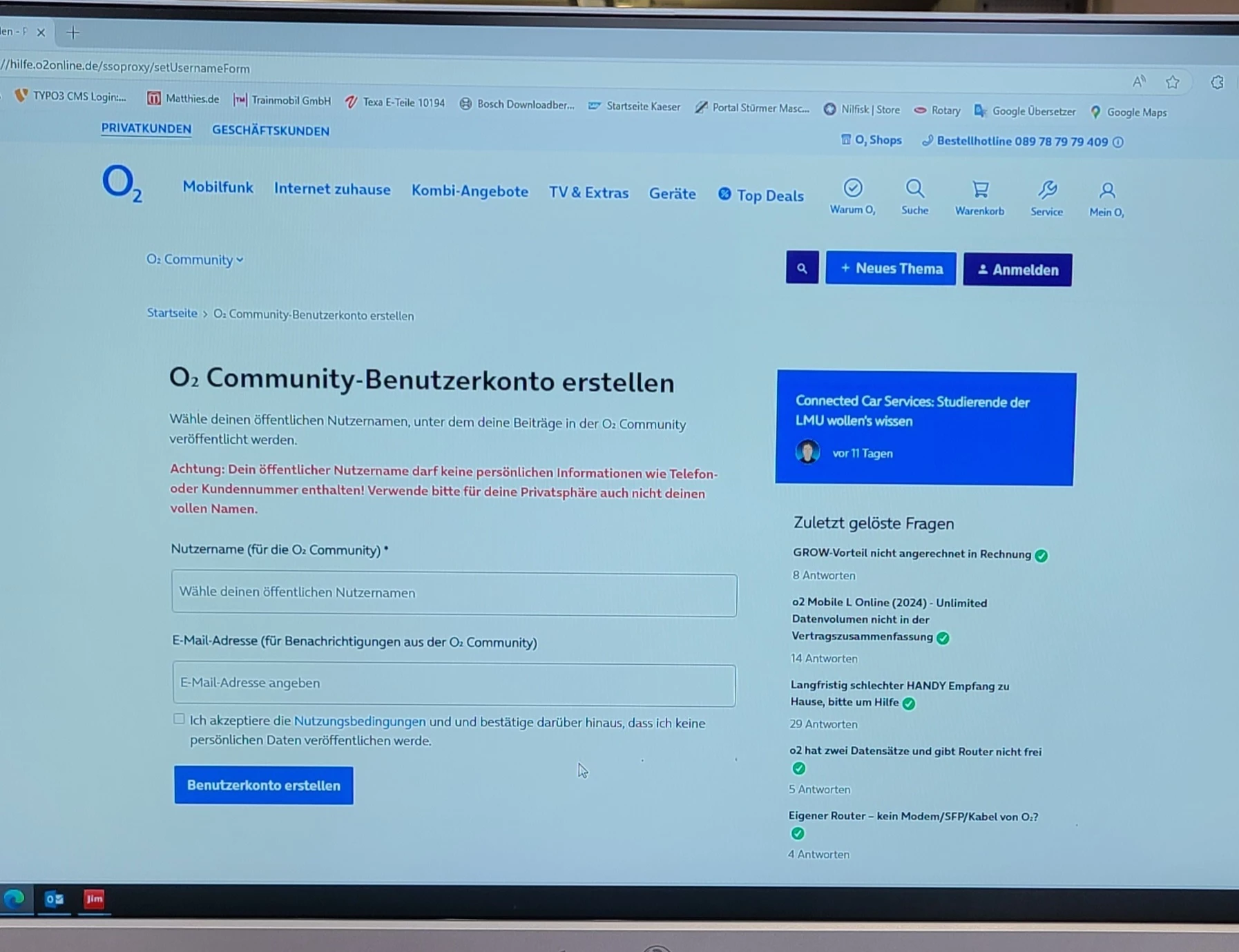 Tipp: Melde dich am besten in einem alternativen Browser (damit da die Cookies und Co einmal safe sind) im Mein o2 Portal mit deiner Nummer an und geh dann die Punkte unter “Schritt 2: Anmelden in der o2 Community” durch und danach meldest du dich dann noch mal hier im Thread.