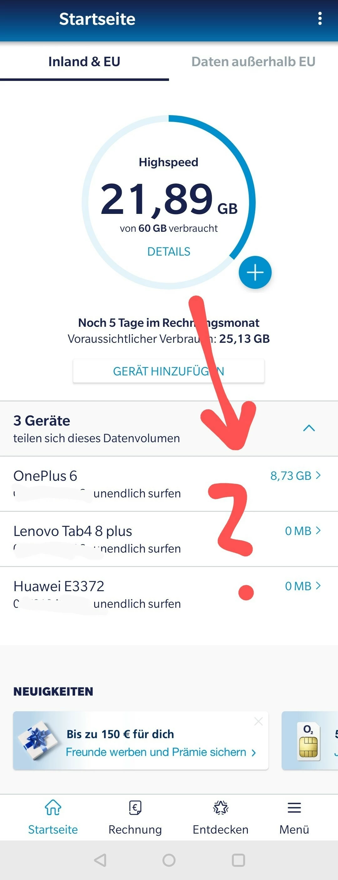 Datenverbrauch in der o2 App stimmt nicht