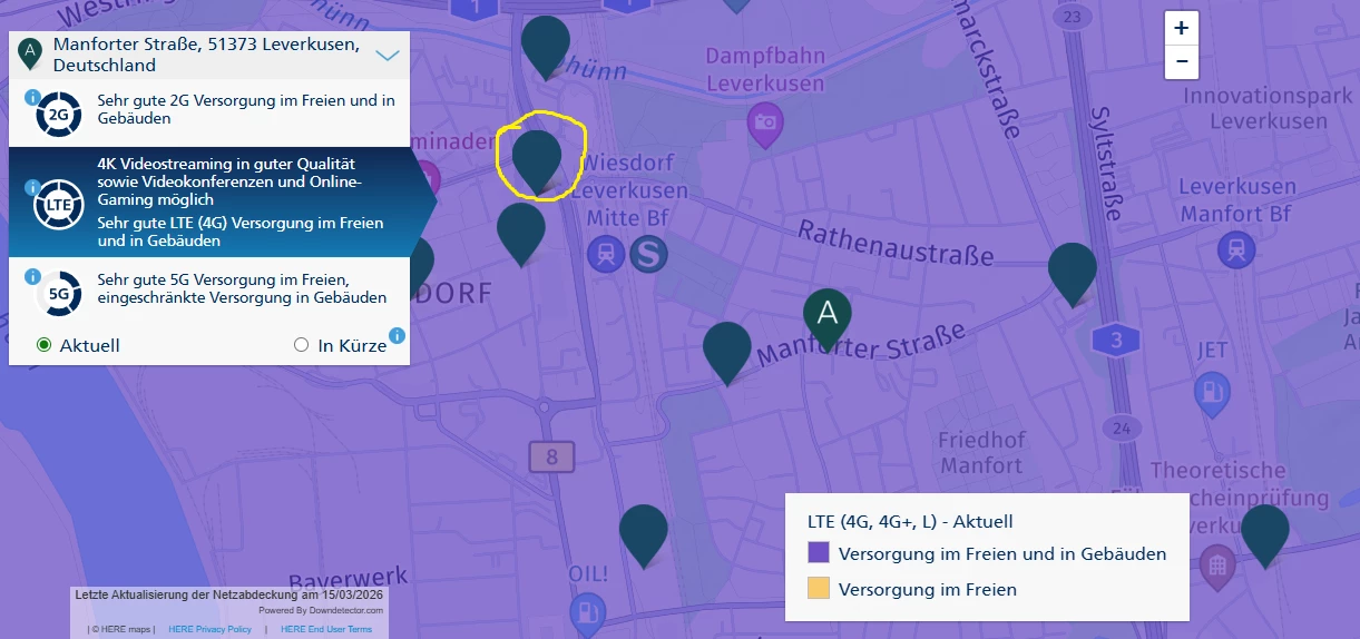 Wie sieht es denn inzwischen aus mit dem Empfang? Hat es sich bis heute verbessert? Im Live-Check und auf unserer Netzkarte konnte ich für die Adresse jetzt so keine Einschränkungen mehr sehen 🤔