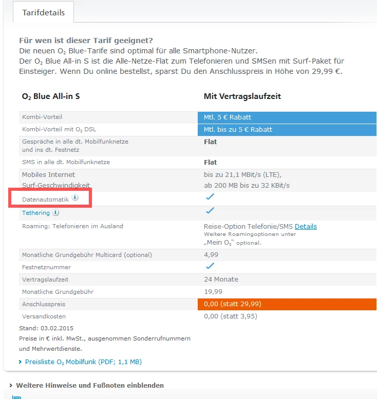 Genau aus dem Grund der Datenautomatik bin ich hier draußen. Da gehe ich doch lieber zur überteuerten Telekom. 150 Mbit LTE und keine versteckten Kosten ala Datenautomatik. Das hätte ich vor ein paar Jahren nicht gewagt zu sagen. Aber die Umständen lassen es nicht anders zu.