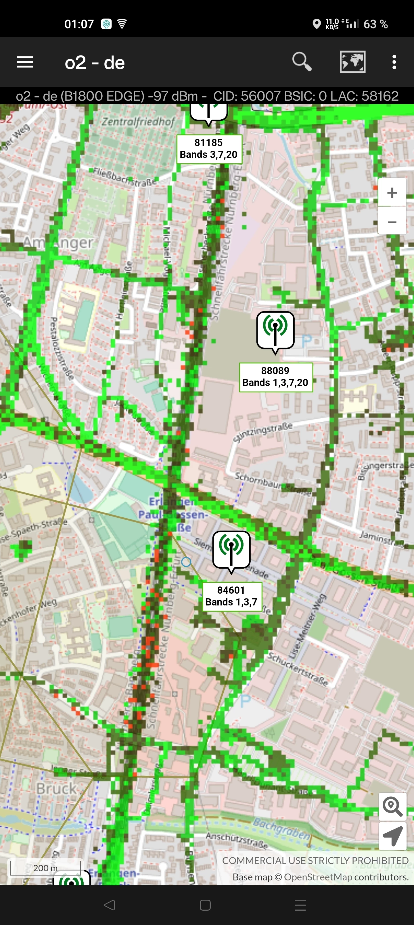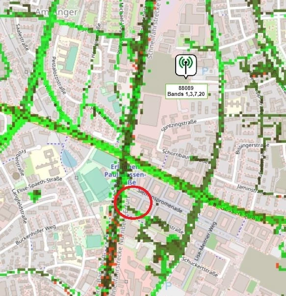 Ich nutze ein Oneplus 9 pro 5g. Cellmapper hab ich genutzt, es gibt 3 Stationen die im Umkreis stehen, jedoch scheint nur eine davon hier die Versorgung zu sichern. Die anderen beiden sind zwar näher, lt Cellmapper erreicht aber deren Abdeckung nicht den Punkt an dem ich mich befinde.