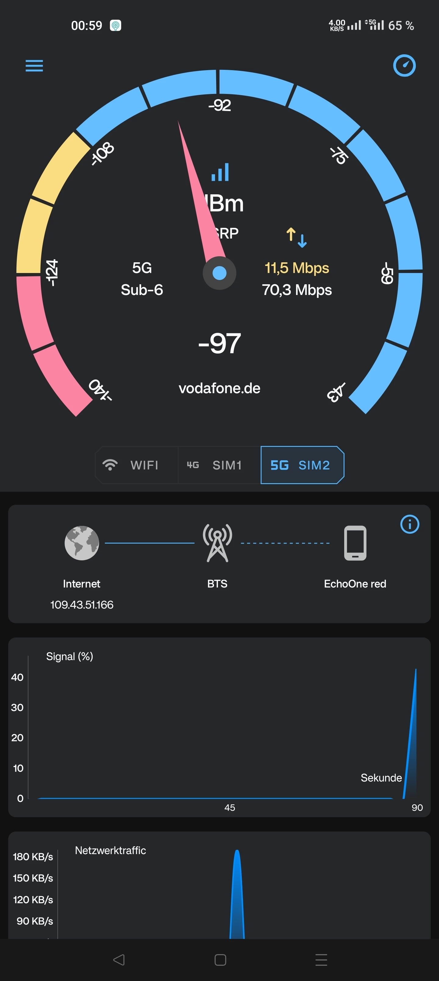 War es aber nicht. Na gut, in der zweiten Nacht hatte ich dann ein Ios gerät dabei und die 2. Sim karte darin. Mal sehen was passiert. Ab ca 1 Uhr war dann bei beiden Geräten, entweder der Empfang komplett zusammengebrochen oder aber nur Edge angezeigt. Wieder die Check Seite geprüft, alles ok… Zwischendurch war dann 5g sogar wieder da, für etwa 10 minuten, dann wieder abbruch. Ab und an wird dann 4g angezeigt, allerdings kommt keine Internetverbindung zustande.