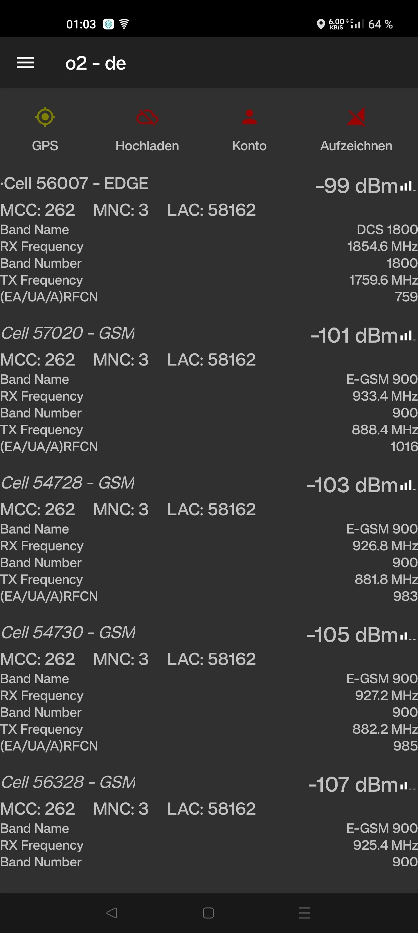 Auch Cellmapper hab ich wieder bemüht. Der Empfang ist sehr wechselhaft und wie beschrieben, teilweise nicht vorhanden. Auch mein Kollege hatte diese Probleme wieder.