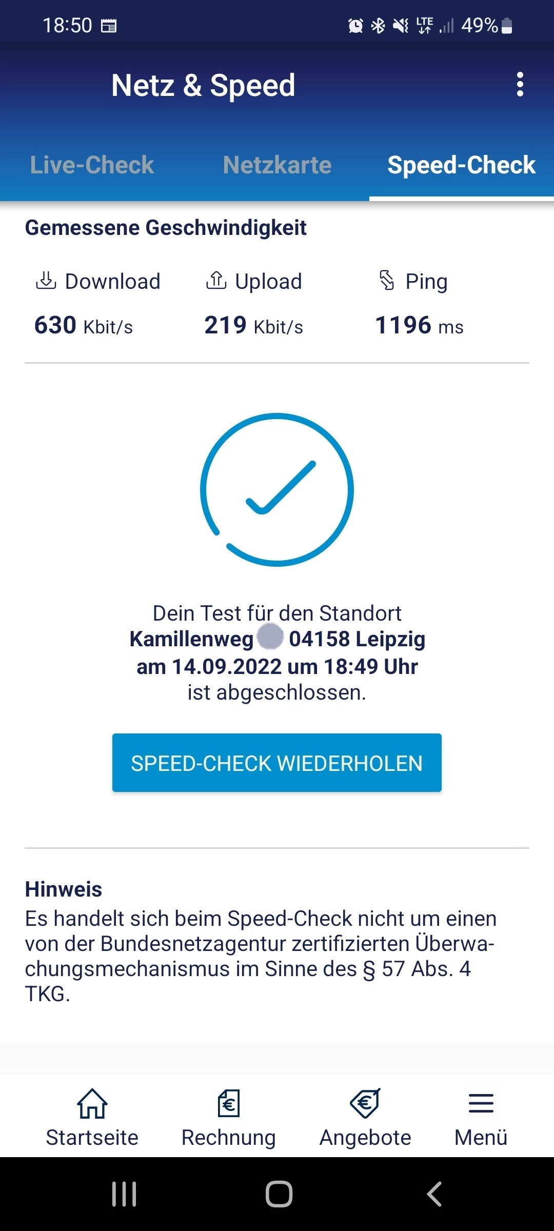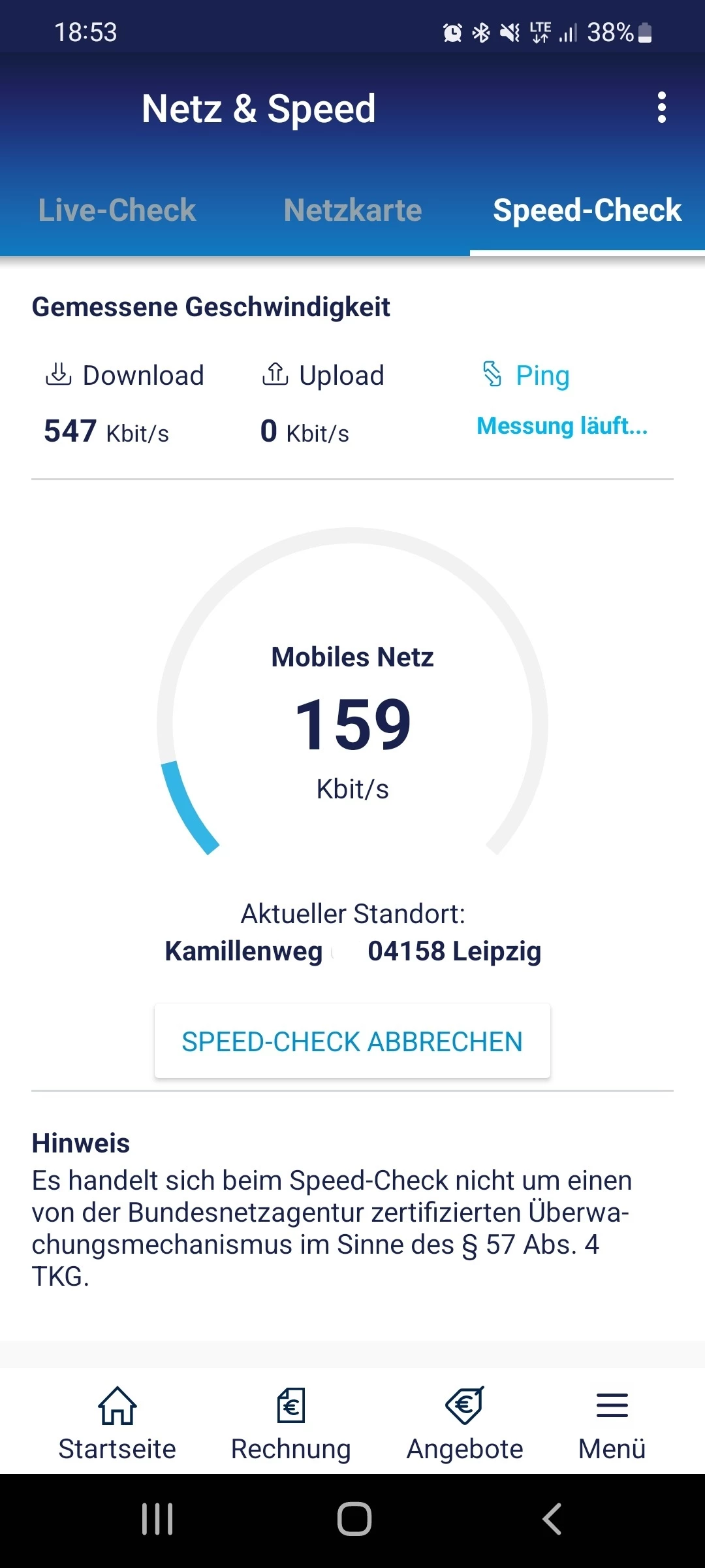 Endgeräte buchen sich ausschließlich in Zelle eNB30508:1 LTE-Band 20 ein. Empfangsstärke - 117bBm. Andere Masten stehen nicht zur Verfügung, da noch schlechtere Empfangsstärke. Unterbrechungsfreies Telefonieren geht nur über GSM. Gleiches Endgerät und gleiche SIM -Karte bringen im 5km entfernten Dorf 290Mbit/s. Das ist das 1000-fache. Uns würden ja schon konstante 10Mbit/s reichen. Könnten sich die Techniker das vielleicht wirklich mal ansehen. Hier gibt es doch ein grundsätzliches Problem mit der Netz-Abdeckung.
