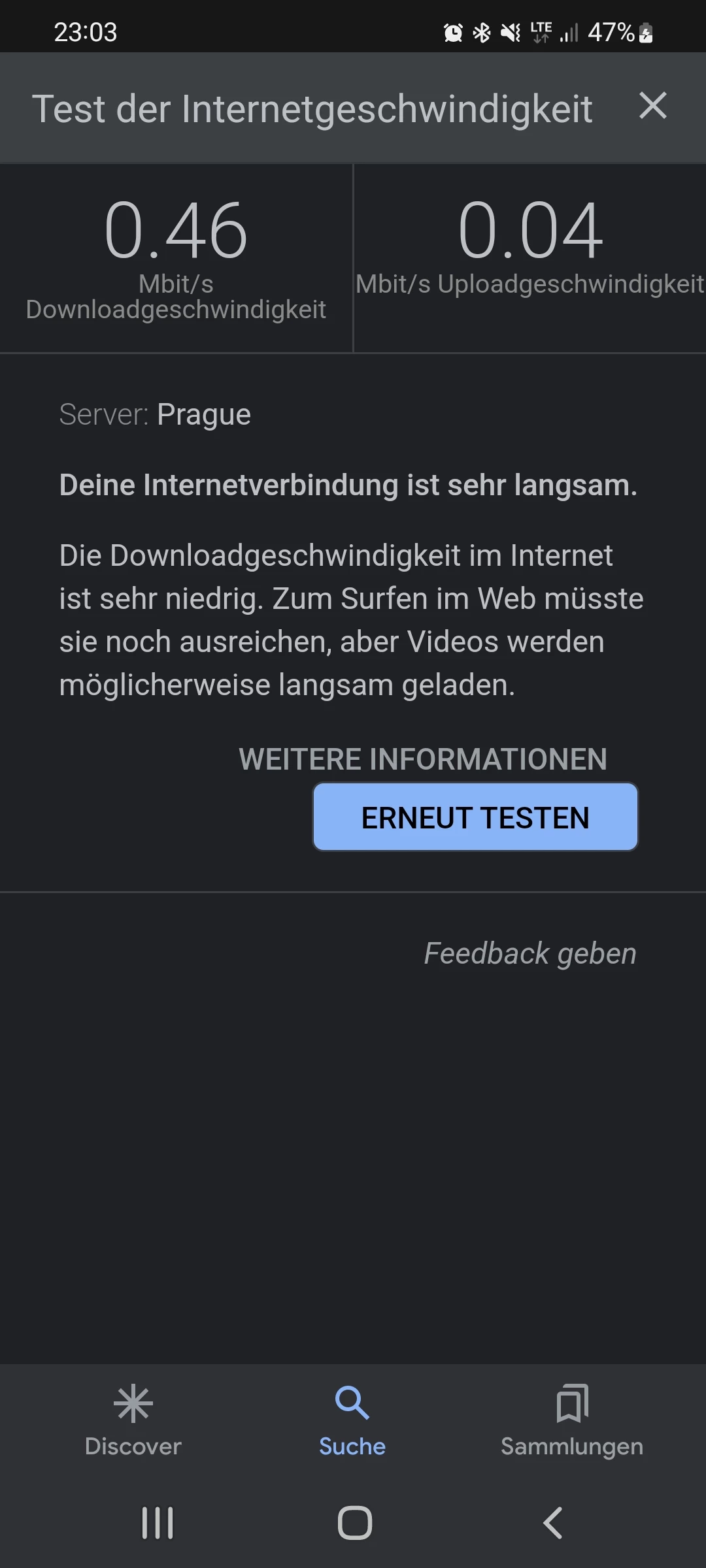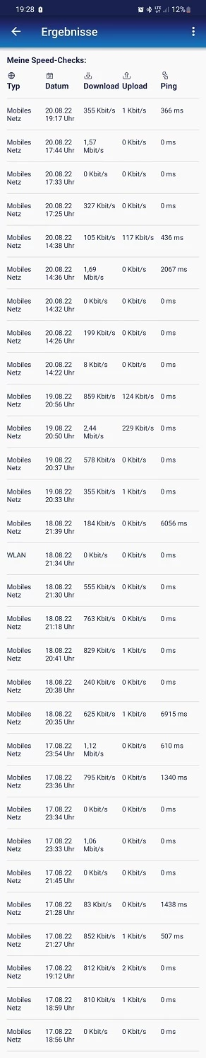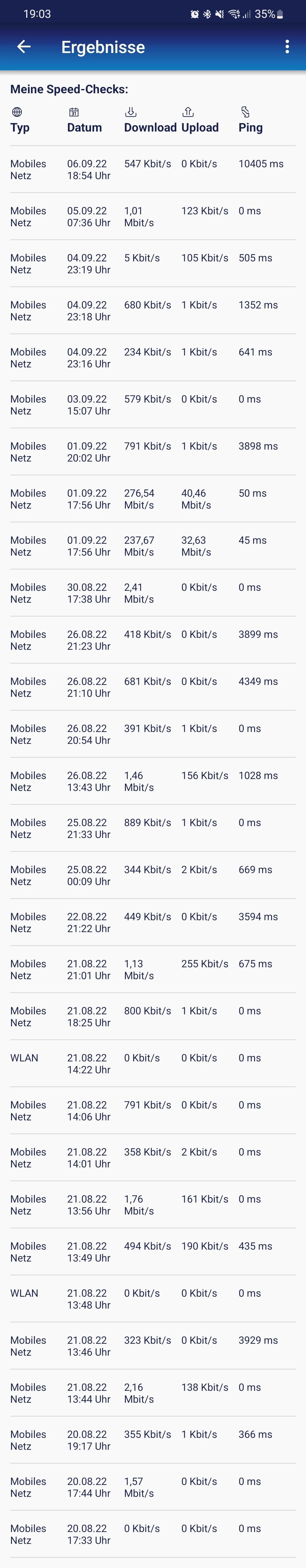 Keine Besserung. Hier mal meine Tests der letzten Tage. Durchgeführt mit der o2-App.