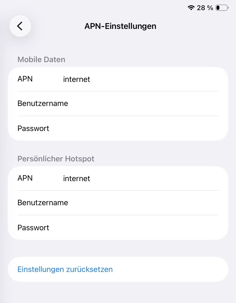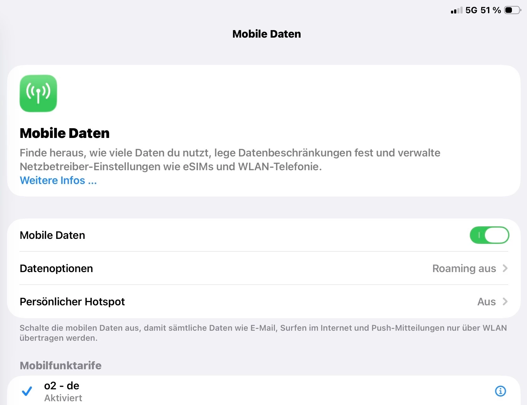 Jetzt habe ich das IPad nochmal komplett zurückgesetzt und nochmal eine neue eSim installiert und immer noch die gleichen Probleme.