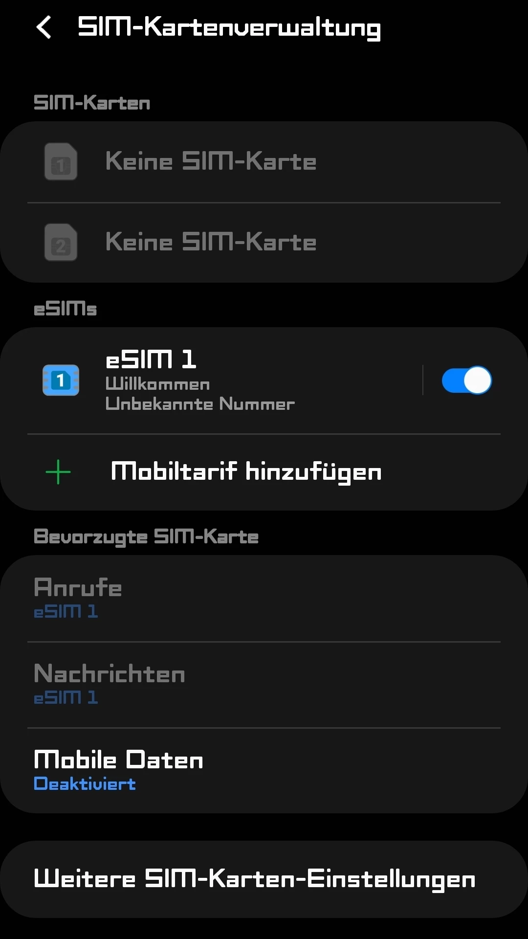 eSim zeigt auf dem S21+ als Provider Willkommen an