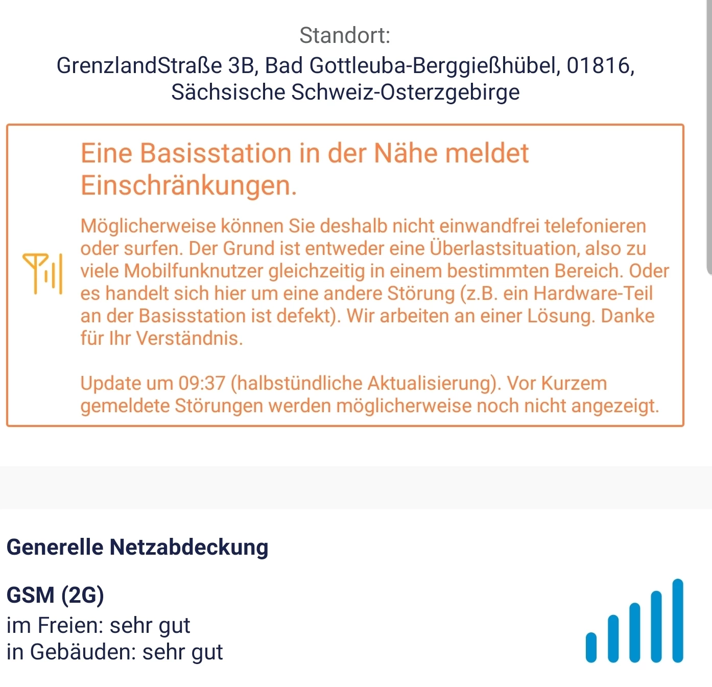 Ich bin relativ neu in O2 unterwegs und habe diverse Probleme. Ich habe den O2 Free Unlimited Vertrag mit einem Samsung Note 10+ und bin im Raum Sächsische Schweiz Osterzgebirge unterwegs. In größeren Städten (Pirna, Dresden,..) habe ich eigentlich keine Verbindungsprobleme, nur schwankt die Geschwindigkeit von 75kB bis zu 8MBit. In manchen Bereichen habe ich zwar Empfang,  aber er ist dann nicht im Netz registriert und es besteht keine Datenverbindung. Manchmal hilft eine manuelle Netzsuche. Aber das ist wirklich fast immer und sehr nervig. Ich sage ja nichts, wenn ich auf dem Land nur 2G habe; aber auch dies ist praktisch nicht vorhanden- für Datenverbindungen. Gucke ich bei mir auf die Störfaktor, steht eigentlich immer, das eine Basisstation Probleme hat. Bei ca. 40x checken (verschiedene Standorte) war nur 2x kein Fehler. Das Handy habe ich auch schon öfters neu gestartet und den Zugangspunkt zurück gesetzt.