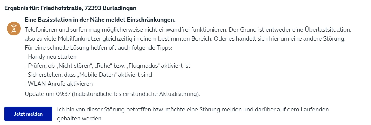 Wir haben hier lediglich die Info, dass die Einschränkung bekannt ist und die Kolleg:innen an der Entstörung arbeiten.