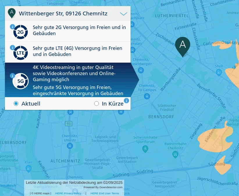 Das Gerät wird zwar 5G im Display anzeigen, allerdings kein 5G nutzen. Im Bereich der “Reichenhainer Straße 35” wirst du wohl die 300 Mbit/s des Tarifs erreichen können. Ich denke die nutzbare Datenrate in deinen Bereich, wird sich erst dann verbessern, wenn die Stationen in deinen Umfeld einen weiteren Ausbau erhalten.