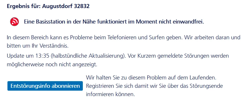 Handynetz Störung im Bereich Augustdorf 32832
