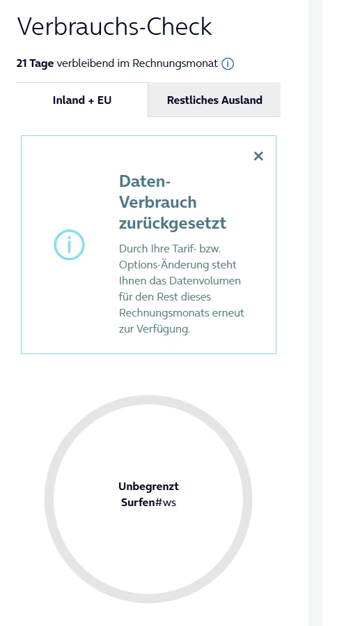 Es könnte sein, dass das Unlimited Pack nicht greift oder der Grow Vorteil zu erst verbraucht wird? Du solltest morgen mal beim Kundenservice dein Datenvolumen zurücksetzen lassen.