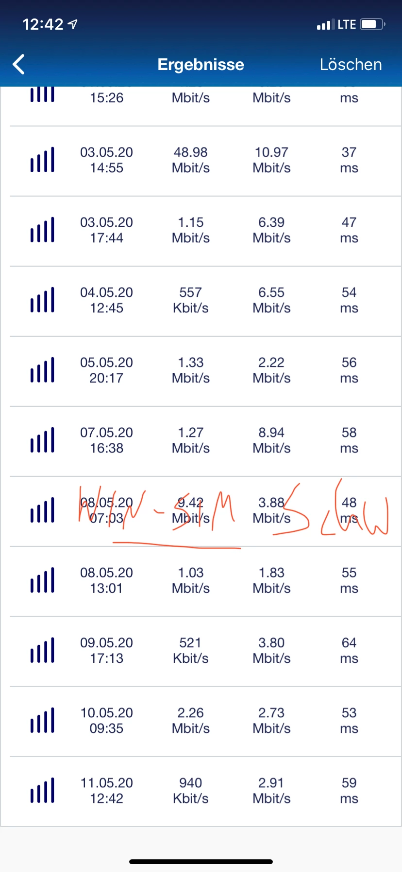 Am 08.05 habe ich noch mal mit der WIN-SIM Karte von meinem Schwager im Keller den Test durchgeführt und wurde Neidisch. Ich habe schließlich den Besseren Vertrag und Zahlen auch mehr als :-(