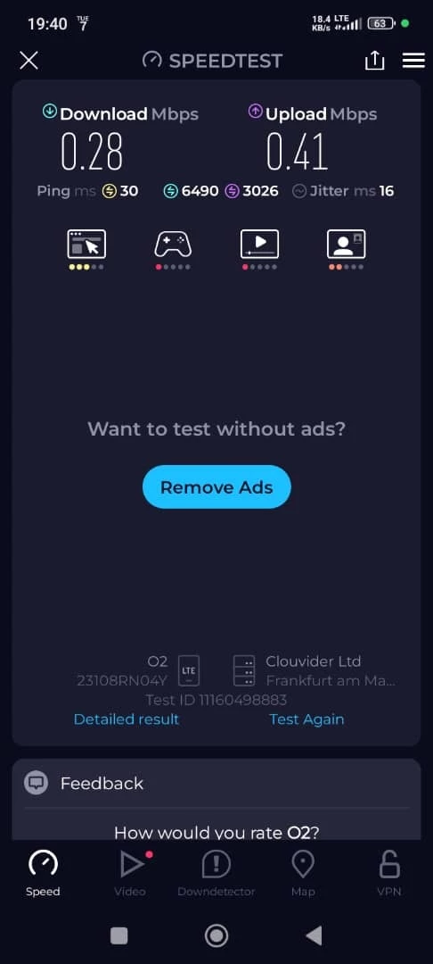 Ich steuere es über die My Service-App, die für Sie bestimmt ist. Zu verschiedenen Tages- und Nachtzeiten ist die Geschwindigkeit immer niedrig oder die Verbindung unterbrochen. Ich habe viele Screenshots.
