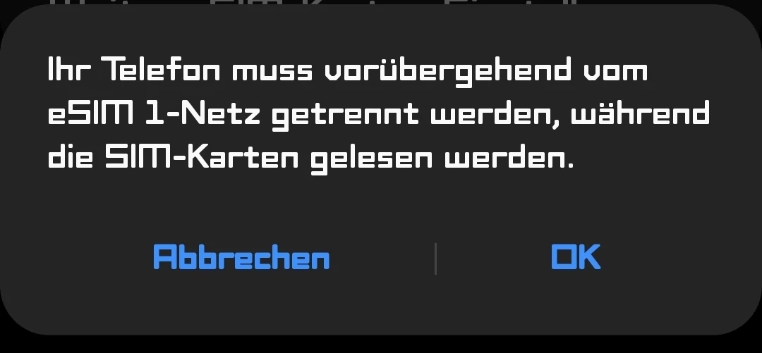 Ihr Telefon muss vorübergehend vom eSim-Netz getrennt werden