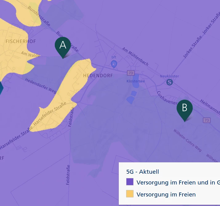 Ja, einzig die Station bei “B” hätte einen 5G 700 Ausbau.