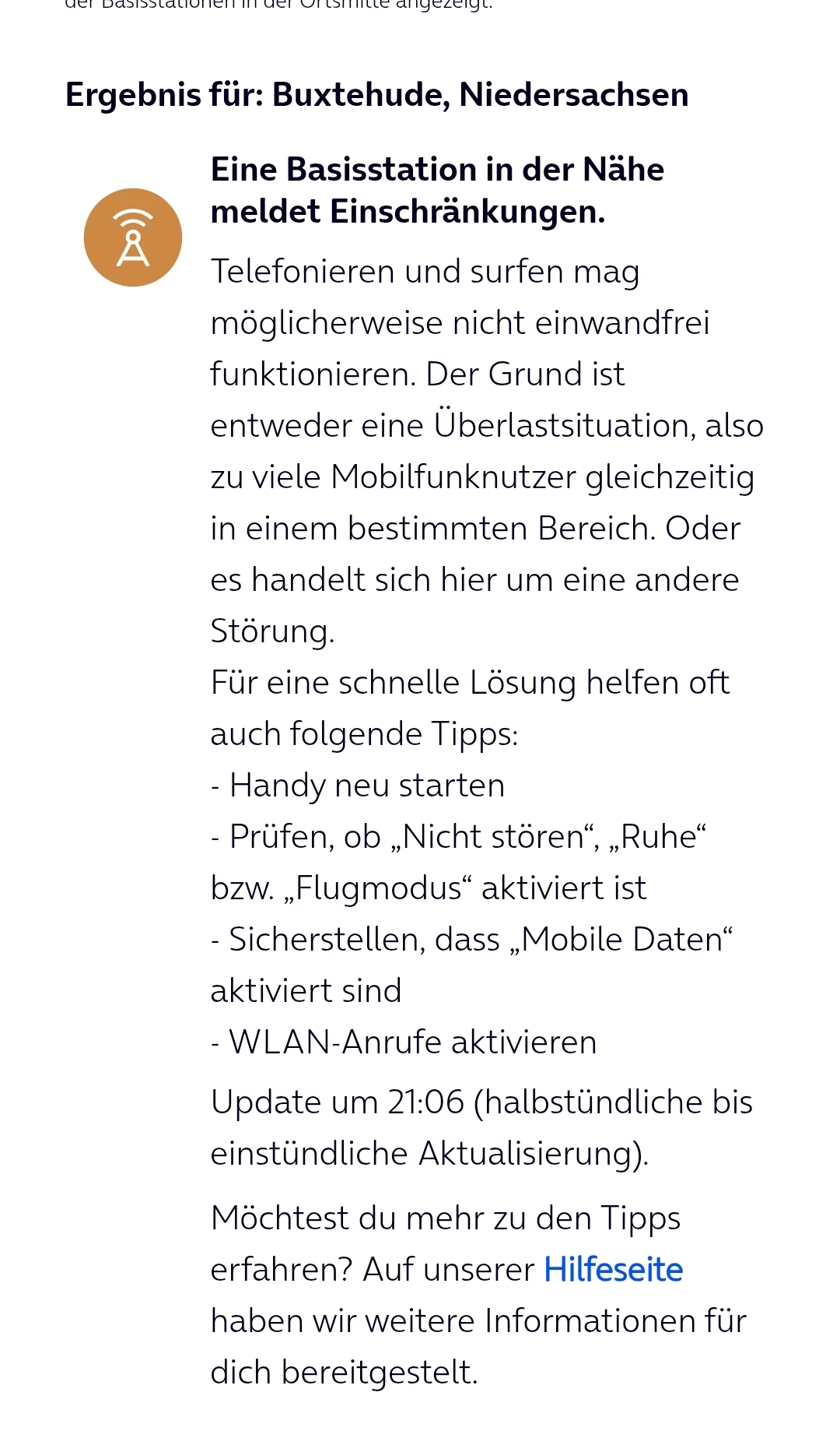 LTE/4G & 5G in Gebäuden eingeschränkt + Überlastung angezeigt.