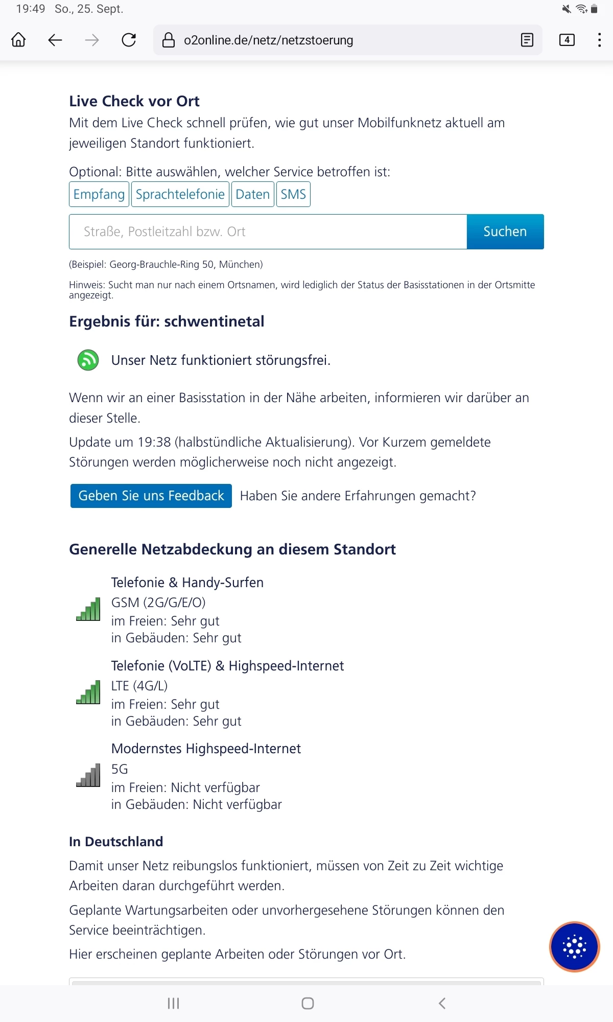aktuell sieht es an deiner Kontaktadresse gut aus mit dem Netz. Wie ich she, hats du schon eine Störungsmeldung aufgenommen.