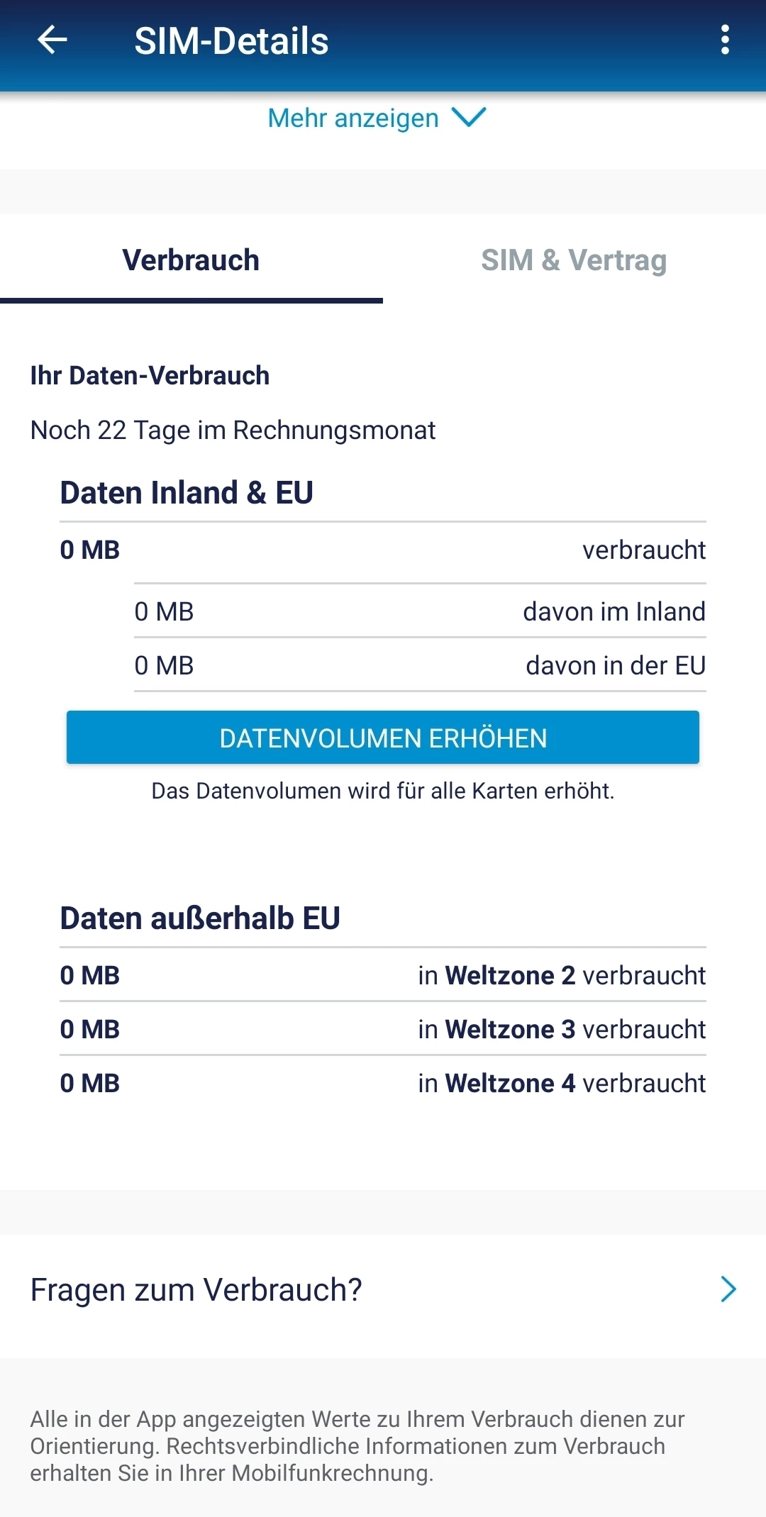 Internet-Nutzung nicht sichtbar in Mein O2