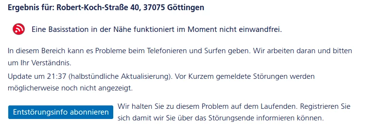 zeigt dir denn der Livecheck (nach Eingabe einer vollständigen Adresse) eine Netzstörung an?