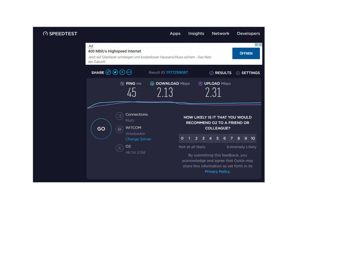 Hallo 02, ich habe meinen Vertrag am 23. 03.2020 umstellen lassen auf “Free Unlimited Max”, also mit “bis zu” 300 MBit/Sec.! Seit dem ist mein Internet so langsam, das ein vernünftiges surfen nicht möglich ist. Meine Downloadgeschwindigkeit beträgt im Schnitt ca 400 -800 B/Sec.! Ein Servicecheck auf der Karte zeigt keine Fehler und bei mir sollen angeblich volle 4 G im Gebäude und außerhalb von Gebäuden sein. Nur merke ich davon nichts. Weder ein Neustart noch das Umschalten auf des 3 G Netz bringen irgendwas. Langsam werde ich ungeduldig und mir reicht es. Wenn ich nicht noch 1 ¼ Jahr an Euren blöden Vertrag gebunden wäre, wäre ich schon längst zu einem anderen Anbieter gegangen. Ich wohne nicht mal auf einem Dorf und bei mir sind Luftlinie ca. 500 Meter 3 Masten von O2. Ich wohne Luftlinie 300 Meter entfernt von der Uni Trier und dann so ein schlechter Empfang, das kann ja wohl nicht sein. Und nein, es liegt nicht an meinen Endgeräten, ich habe mehrere Geräte ausprobiert! Macht endlich was, ich scheine ja auch kein Einzelfall zu sein, nachdem was ich hier so lese!